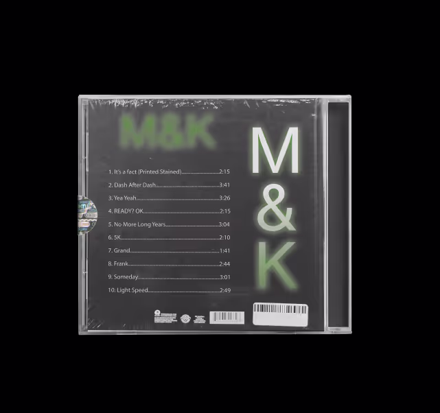På baksiden av coveret videreføres den samme estetiske retningen, med en ren og oversiktlig låtliste hvor typografien står i sentrum.Gjennom dette redesignprosjektet har jeg utforsket hvordan typografi alene kan kommunisere en stemning og en identitet, og hvordan en bevisst bruk av farger, komposisjon og tekstur kan gi et eksisterende design en ny, frisk tolkning.